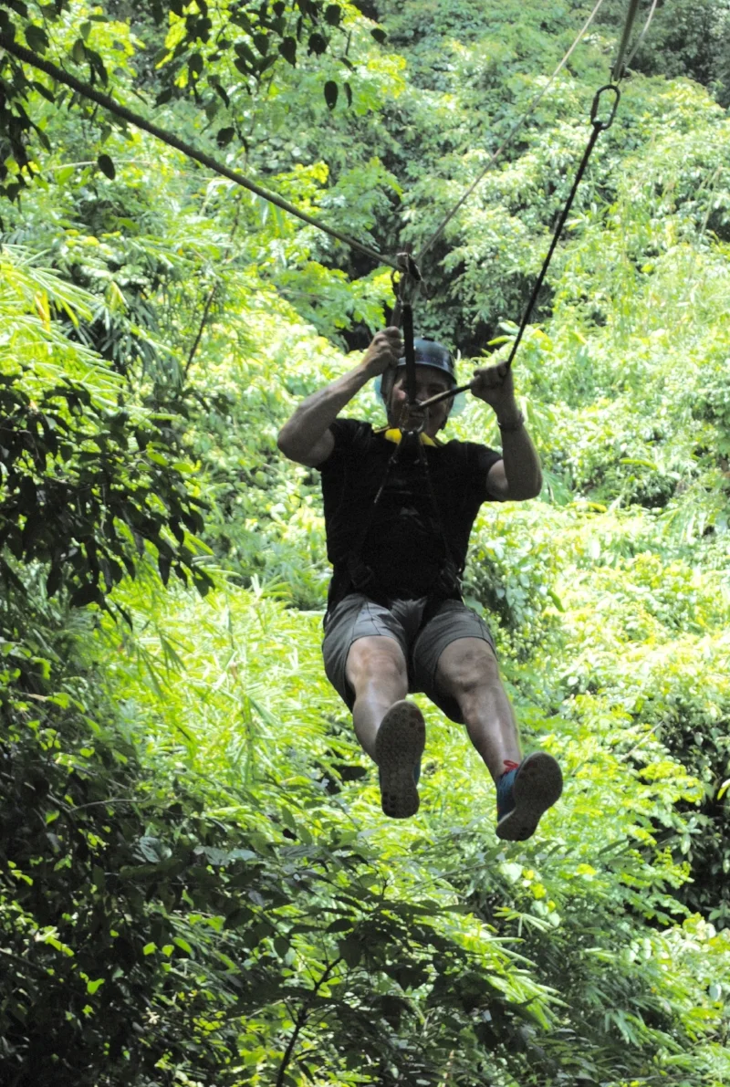 Today was packed with adventure starting with ziplining over the jungle. First thing they do after taking your money is plop a hairnet over your head before the helmet. Looked like an audition for cooking show! Then the harness that was sturdy enough to lift a rhino, two legs in, now two arms, there you go, now you wook wike pwofeshunel!