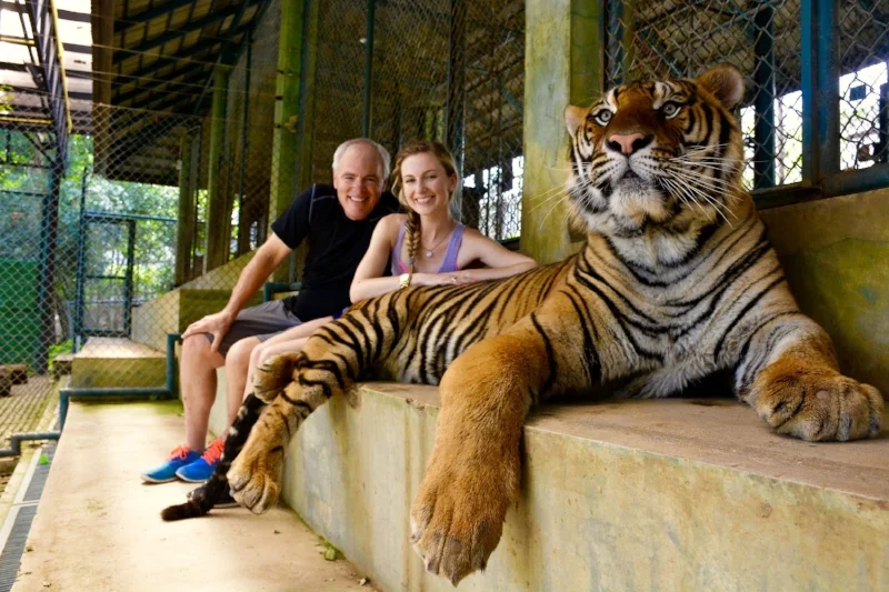 Next stop was Tiger Kingdom with all size and breeds of tigers born in captivity and amazingly tolerant of photo seekers like us. Katy gambolled with the babies and together we flounced about the giant male. It was special to be up close and personal with a huge Bengal, but we couldn't escape the touristy feeling of the wild beast in captivity. Worth the visit nevertheless.