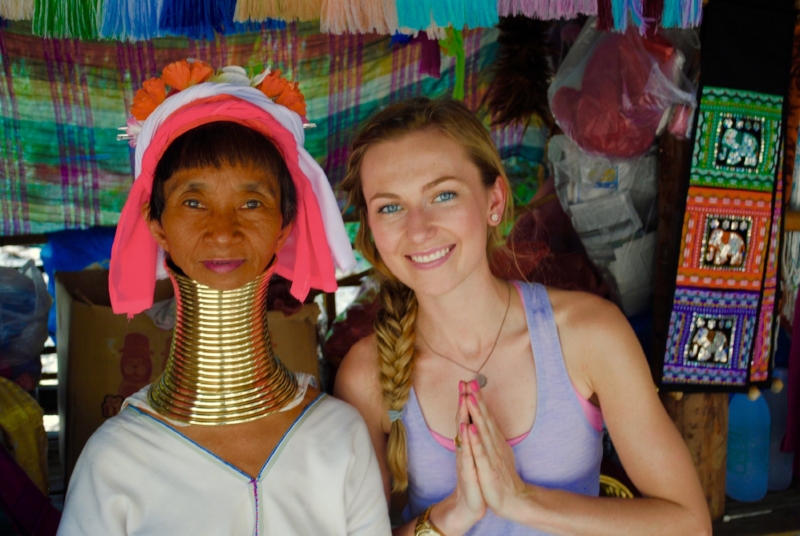 Nearby was the longneck woman tribe that Katy had to see. Big sign said "Karen" so we thought we'd go find her. Here's where the wierdness began. $25 each in Canadian, very expensive by Thai standards, then 47 market stalls ALL selling the same frigging trinkets, beaded pouches, scarves, bracelets, and carved long neck women. And I do mean the SAME! I didn't buy anything. The marketing genius who came up with this business model must have thought charge admission to the store and we don't even need to sell any of that shit. Katy got a photo with Stretch-Spine woman and we were happy to just give her 50 bhat, just don't gimme any of that cheap crap on your table!